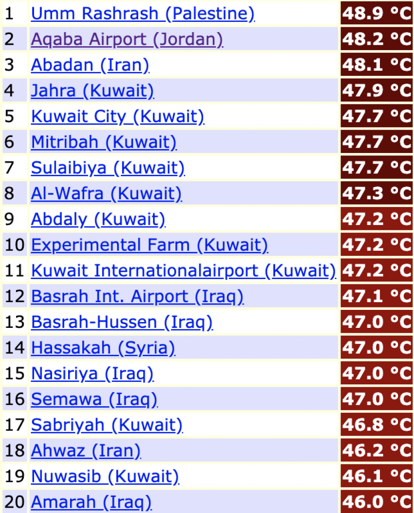 العقبة ت سج ل ثاني أعلى درجة حرارة عظمى في العالم الجمعة شرق وغرب وكالة عمون الاخبارية