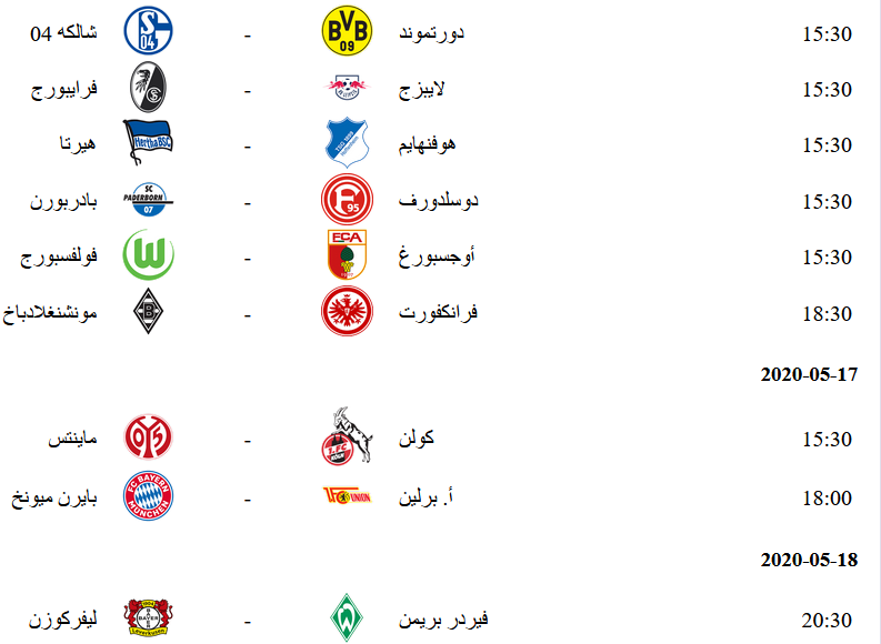 رسميا جدول مباريات الجولة 26 في الدورى الالمانى بعد الاستئناف باصى كورة