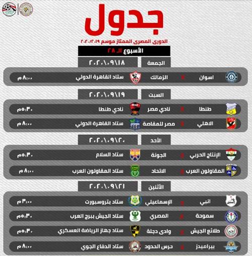 جدول مباريات الدورى المصرى الجديد 2019 2020 Youtube