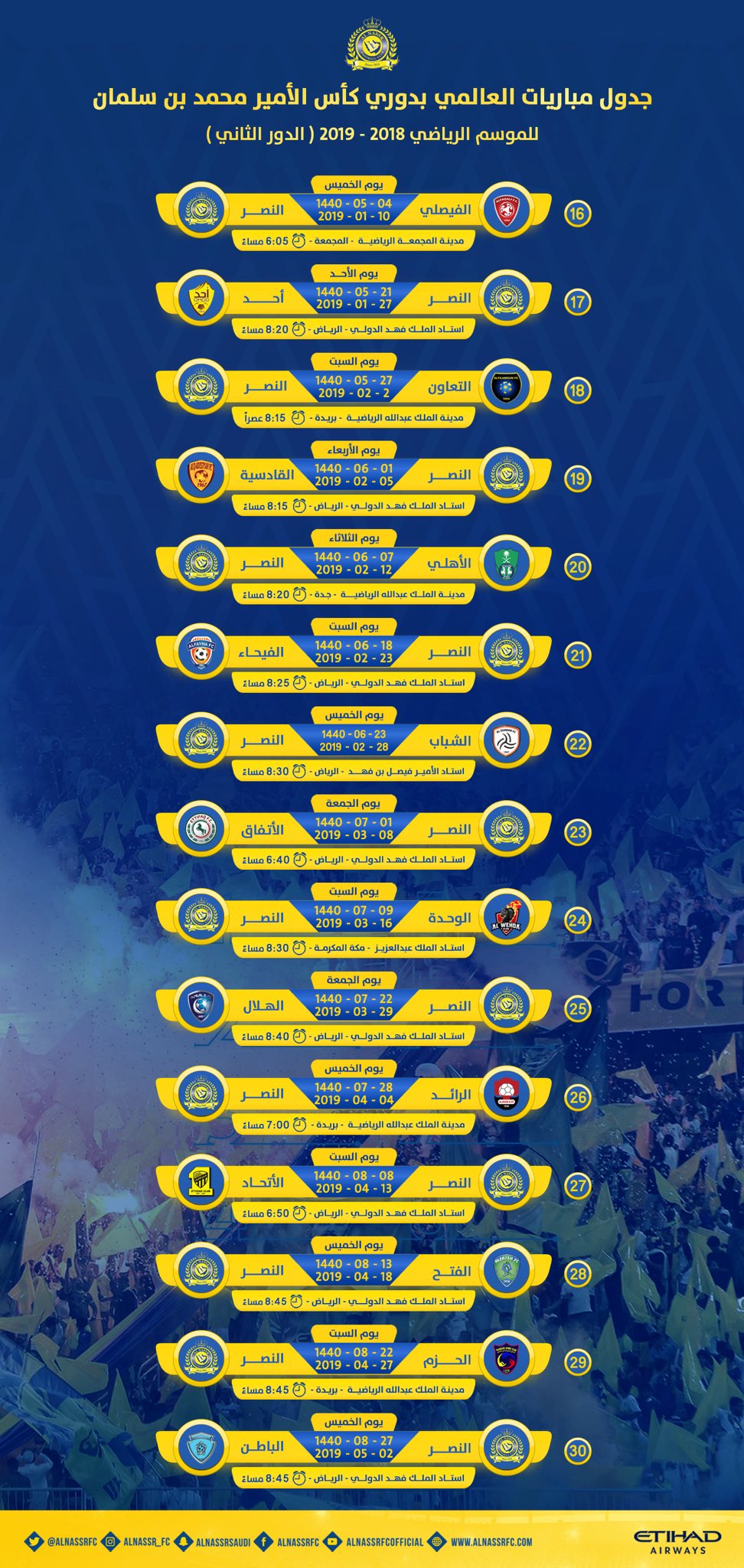 نادي النصر السعودي On Twitter جدول مباريات العالمي في الدور الثاني من دوري كأس الأمير محمد بن سلمان بالتوفيق لـ العالمي