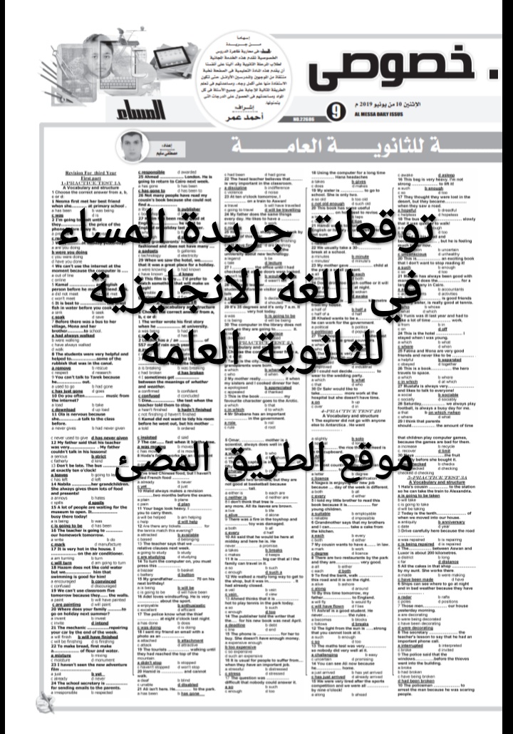 توقعات جريدة المساء في اللغة الانجليزية للثانوية العامة أهم الأسئلة المتوقعة لامتحان اللغة الانجليزية ثالثة ثانوي